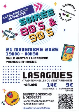 Par Edwige Perera, publié le lundi 10 novembre 2025 18:20 - Mis à jour le lundi 10 novembre 2025 18:20Le FSE organise une soirée dansante années 80/90 le vendredi 21 novembre 2025 dès 19h00 à la salle Gaston Laverrière de Prévessin. -